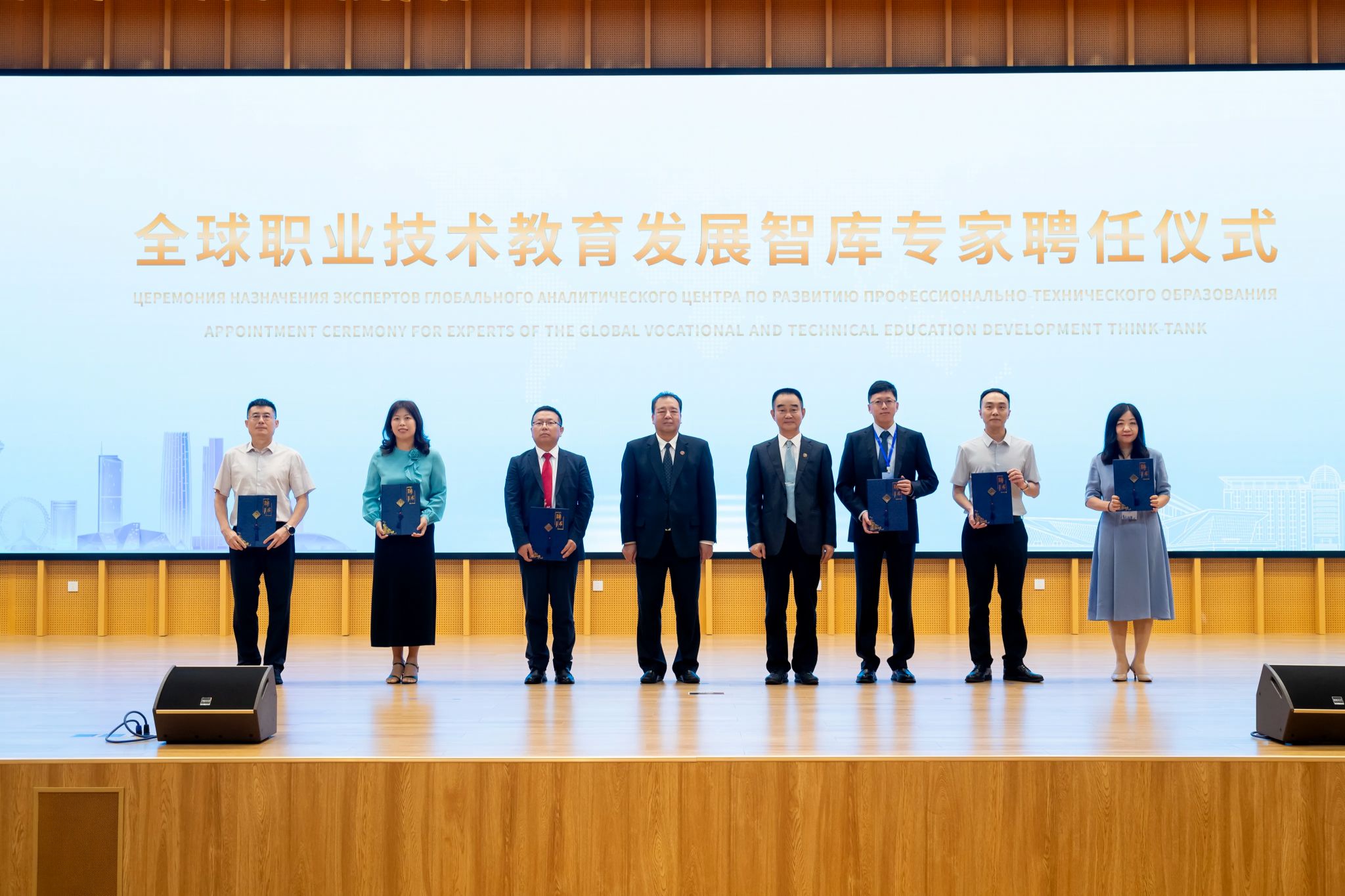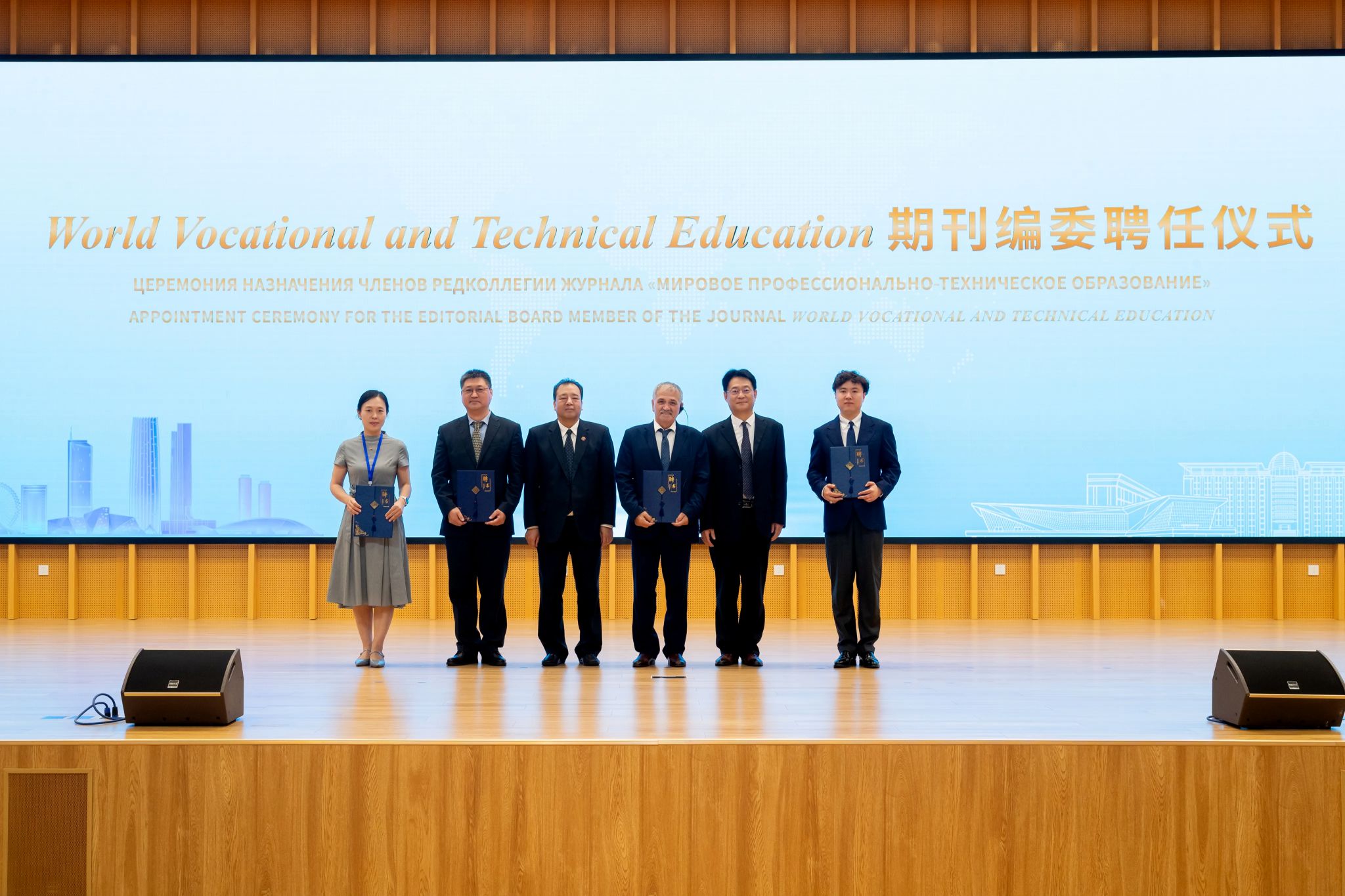 张金刚、中国教育部鲁班工坊建设专家委员会主任、工程实践创新项目(EPIP)研推中心主任吕景泉为全球职业技术教育发展智库专家颁发聘书。张金刚、刘捷为《世界职业技术教育》国际期刊编委颁发聘书。