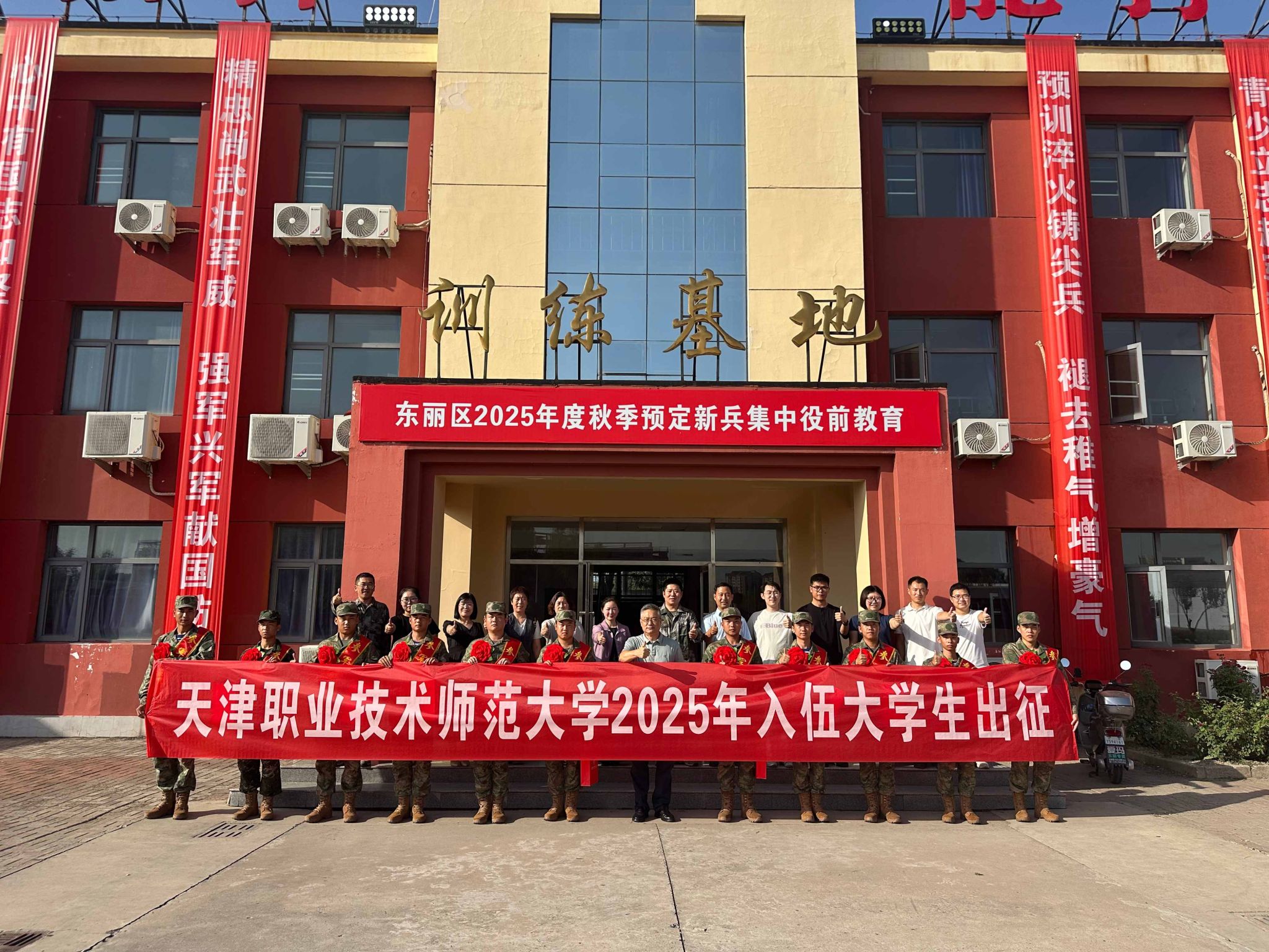 本网讯【通讯员 朱文祥 车越新】青春献礼强军梦,热血奔赴新征程。9月14日下午,我校2025年秋季参军入伍大学生出征欢送仪式在东丽区役前教育基地举行。校党委常委、副校长李富森,党委学工部、武装部有关负责同志,各学院党委副书记、辅导员代表参加欢送仪式,为即将奔赴军营的12名天职师大学子送上真挚祝福。