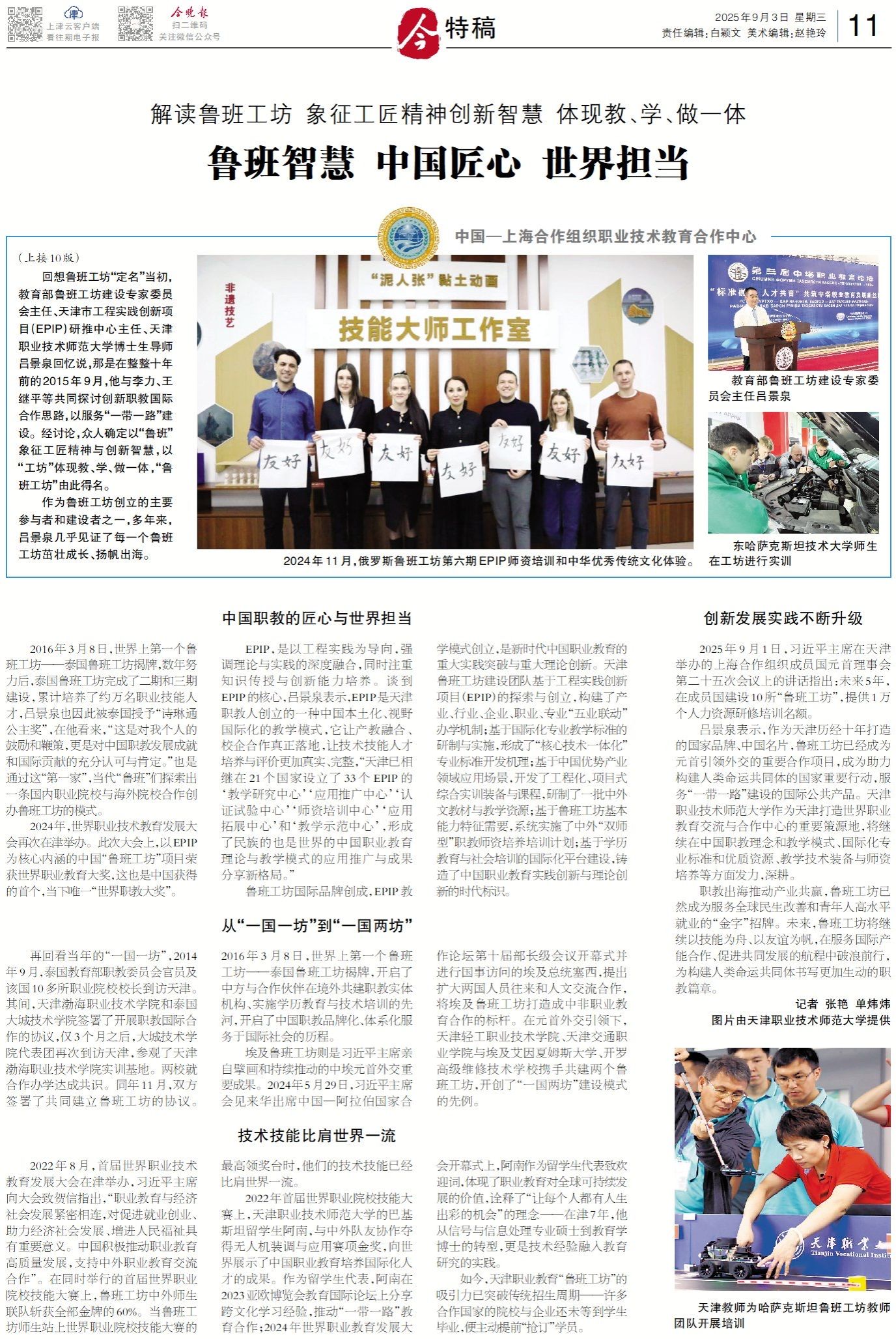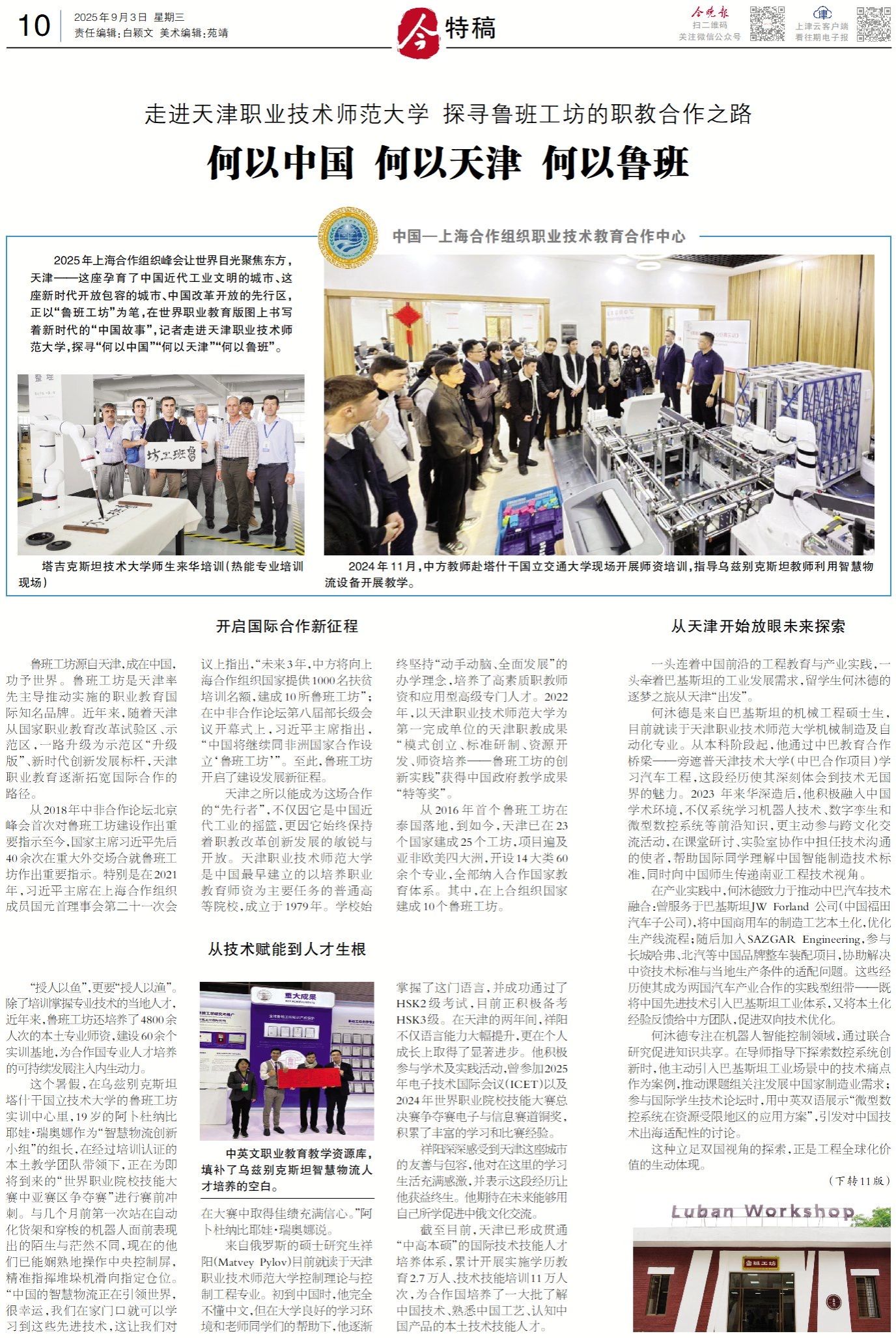 2025年上海合作组织峰会让世界目光聚焦东方,天津——这座孕育了中国近代工业文明的城市、这座新时代开放包容的城市、中国改革开放的先行区,正以“鲁班工坊”为笔,在世界职业教育版图上书写着新时代的“中国故事”,记者走进天津职业技术师范大学,探寻“何以中国”“何以天津”“何以鲁班”。