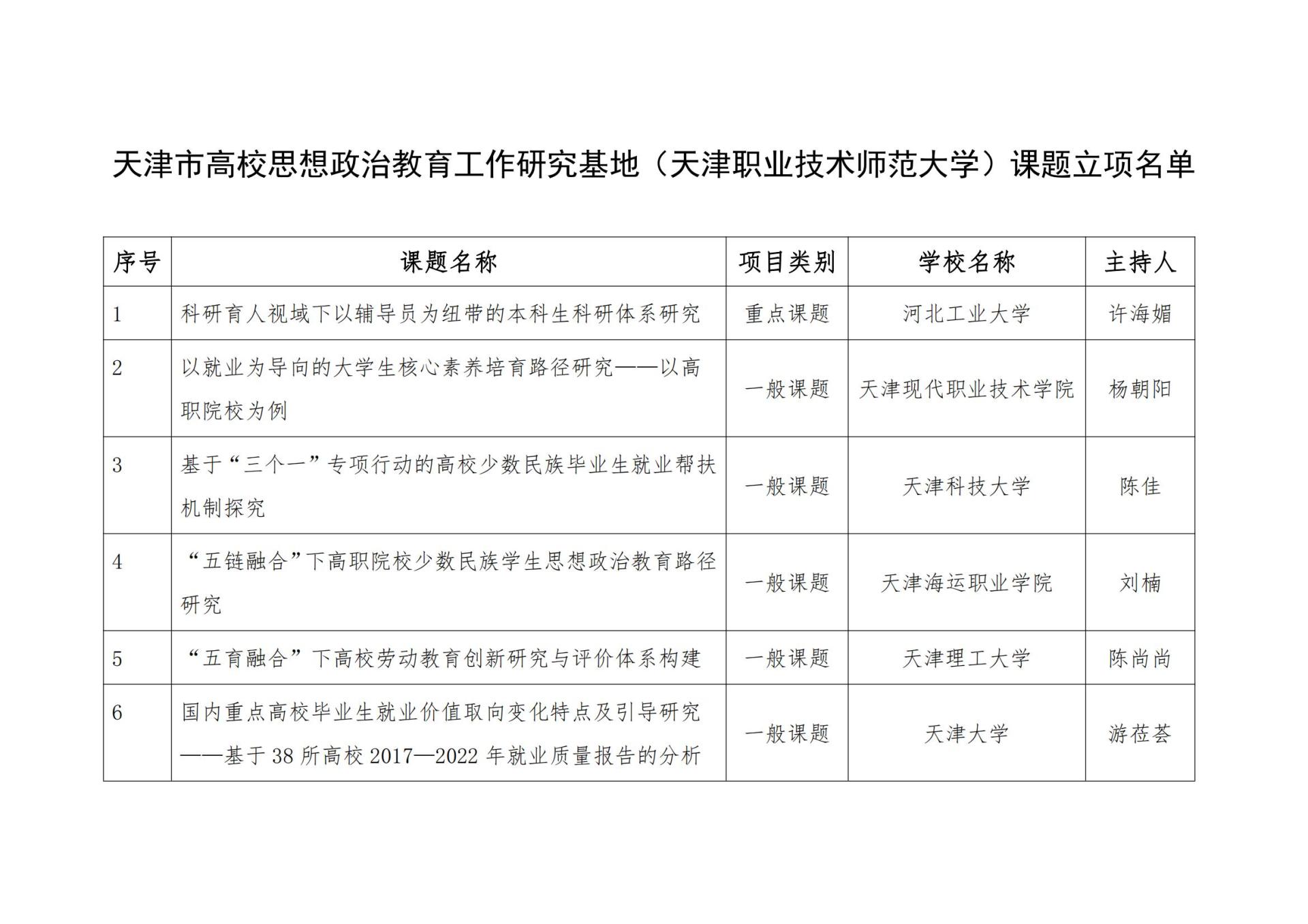 附件:天津市高校思想政治教育工作研究基地(天津职业技术师范大学)课题立项名单