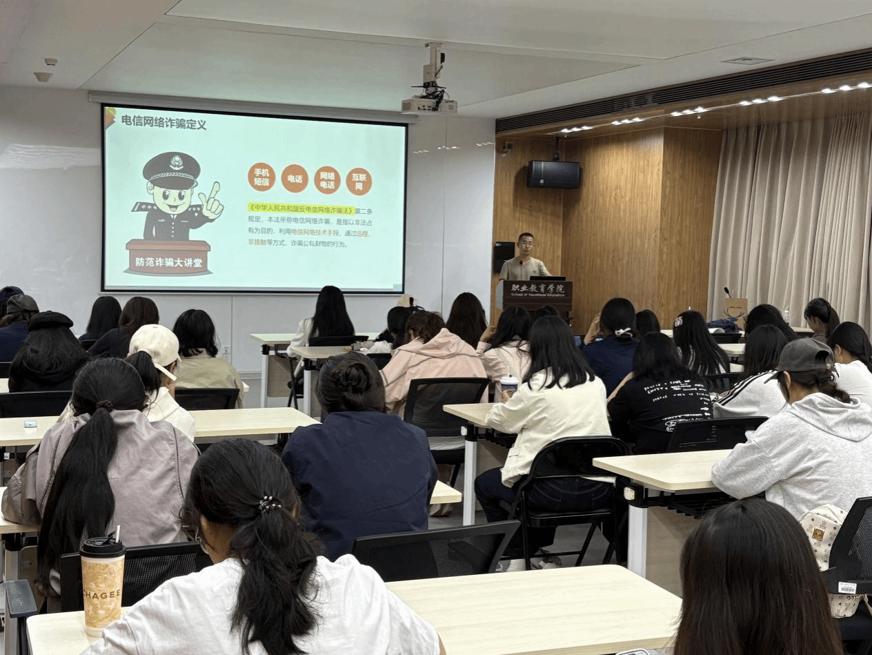 本网讯【张飞宇 刘妍君】为提升学生对电信网络诈骗的辨别与防范能力,有效守护财产安全,9月24日,职业教育学院组织开展了以“防范电信网络诈骗”为主题的宣讲会。特邀我校党委安全工作部苏森老师担任主讲,面向2025级全体新生进行了宣讲。