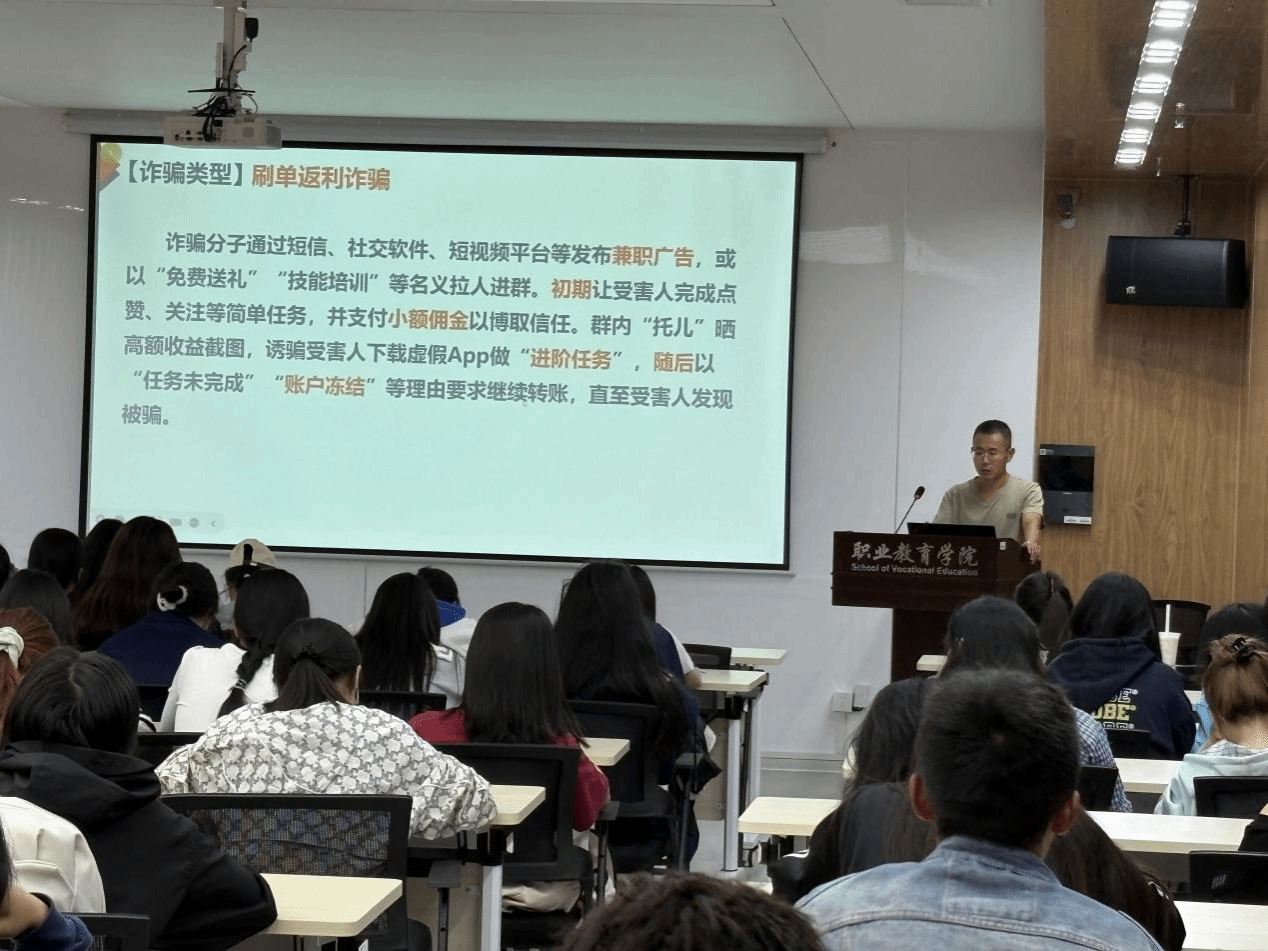 苏森剖析了在校学生易成为诈骗目标的原因。他指出,学生群体年龄特殊、社会经验匮乏、有特定心理特征和活跃上网习惯,更易被诈骗分子利用。不法分子以学生常见场景为诱饵,前期给予小利建立信任,进而实施诈骗,手法隐蔽、欺骗性强。他结合案例警示学生增强防范意识,牢记“天上不会掉馅饼”,做到不轻信陌生来电、不点击不明链接、不泄露密码与验证码,对转账汇款要求保持警惕。